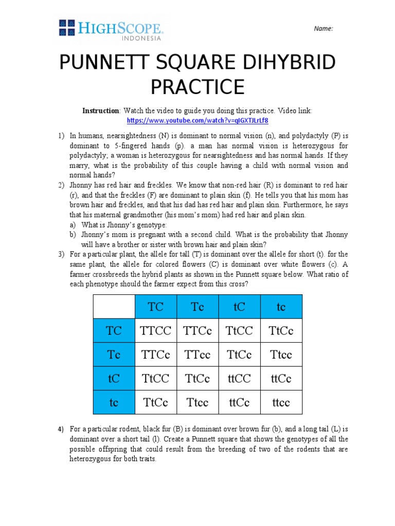 Some of the worksheets for this concept are dihybrid punnett square practice, punnett square problems continued answers, punnett square cheat, work punnett square review answers, punnett square problems continued answers, introduction to punnett squares, understanding genetics punnett.